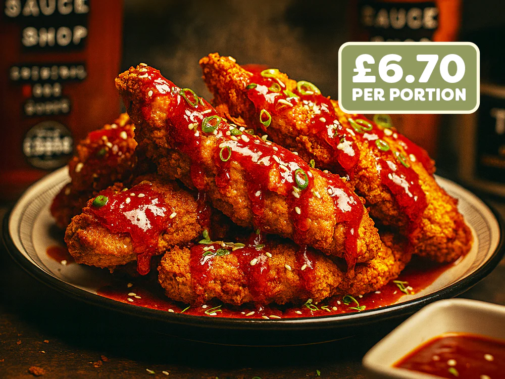 Fried Chicken Strips X 6 (Fried Chicken Strip (Chicken Breast, Vegetable Oil (Soya Bean Oil), Buttermilk Marinade (milk, Spice Mix (Hot Smoked Paprika, Black Pepper, Salt, Rosemary, Thyme, Sage, Cayenne Pepper, Pepper), Lemon Juice, (lemon Juice, Preservative: Potassium Metabisulphite.)), Breading ((Breadcrumbs (wheat Flour, Salt, Spices [pepper, Chillies}, Potato And Corn Starch, Emulsifier: Guar Gum,chicken Protein Powder, Fat Powder [palm Fat, Milk Sugar, Milk Protein}, Glucose Syrup, Flavour Enhancer:monosodium Glutamate, Flavour [contains Flavour Enhancer: Monosodium Glutamate, Wheat, Soy, Celery], Stabilizer E450, Acidity Regulator: Sodium Bicarbonate)) (Gluten), wheat Flour))), Yangnyeom Korean Dipping Sauce (Corn Syrup, Tomato Ketchup (Water, Tomato Concentrate, Sugar, Modified Starch, Acid: Acetic Acid, Salt, Acid: Citric Acid, Preservative (Potassium Sorbate), Colour (E150d), Rapeseed Oil, Sweetener (Sucralose), Natural Flavourings.), Demerara Sugar, Minced Garlic (Garlic 73%, Water, Acidity Regulator: Citric Acid., Korean Chili Paste (Rice, Water, Corn Syrup, Red Pepper Powder (12%), Salt, Soybean, Alcohol, Wheat Extract, Soy Seasoning (Soybean, Water, Salt, Wheat Gluten, Salt, Alochol, Yeast Extract, Maltodextrin), Concentrated Garlic Juice, Koji-Starter) (Soya), Soy Sauce).